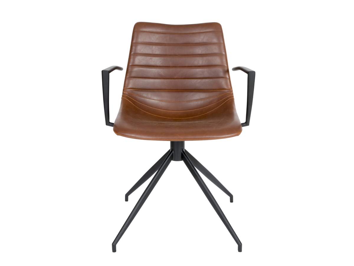 Drejbar stol med armlæn i vintage kunstlæder med sort understel.