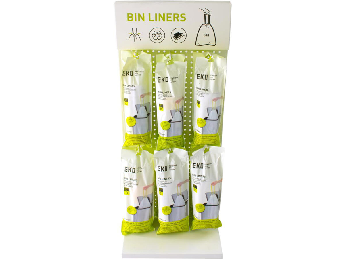 Hver rulle ligger i en yderpose med tryk på, der gør dem mulige at sælge i detail. Der findes desuden et stativ til ophængning af EKO rullerne.