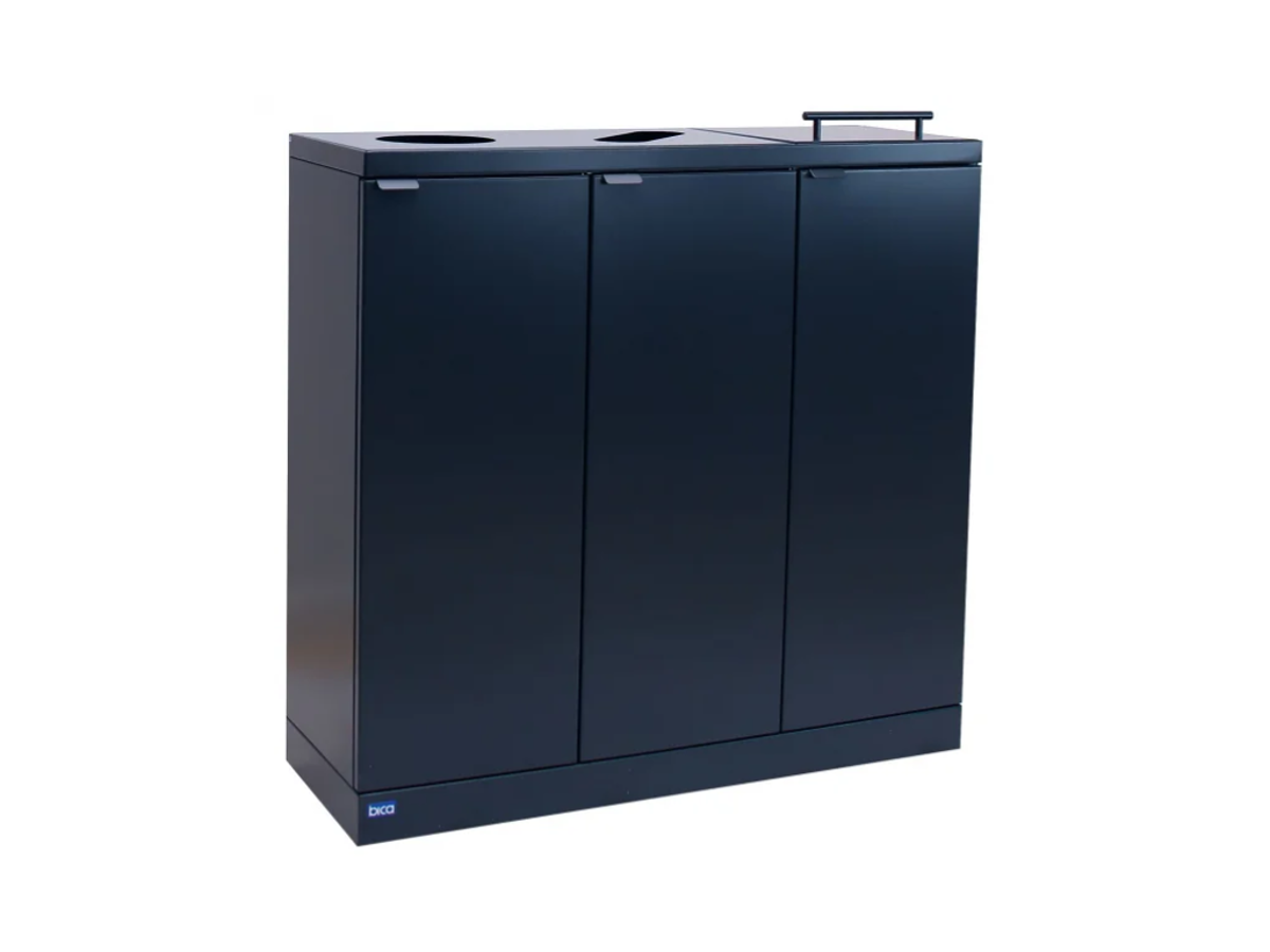 Med denne model er der 3 skraldespande i et sammenbygget system, som alle kan kombineres med andre enkeltstående moduler, eller dobbelt og trippel. Hver enkelt affaldsbeholder i systemet, har egen frontlåge, for nem håndtering og tømning af beholderne.