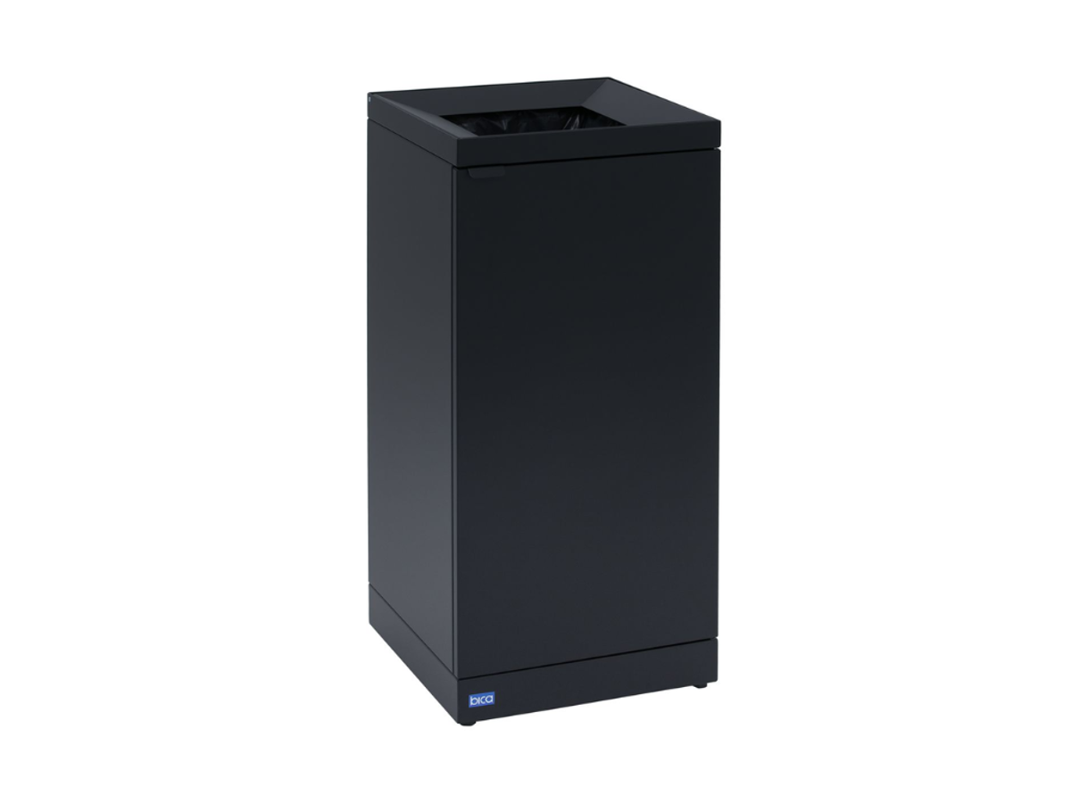 Carbi affaldsbeholder i elegant tidløs design i top kvalitet. Designet til f.eks. kantiner, hvor de skrå sider former en tragt ind imod posen under.