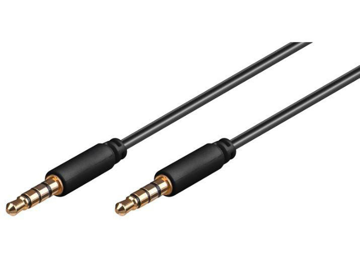 Minijack kabel til brug som forlængerledning til lydkabler med 3,5 mm AUX-stik, f.eks. stereohovedtelefoner med mikrofon.