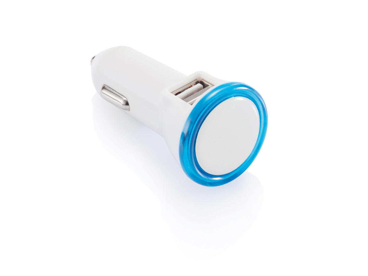 Bærbar stikforbindelse med dobbelt USB-port og indbygget LED-lampe på toppen. Udgang: 5 V/2,1 A