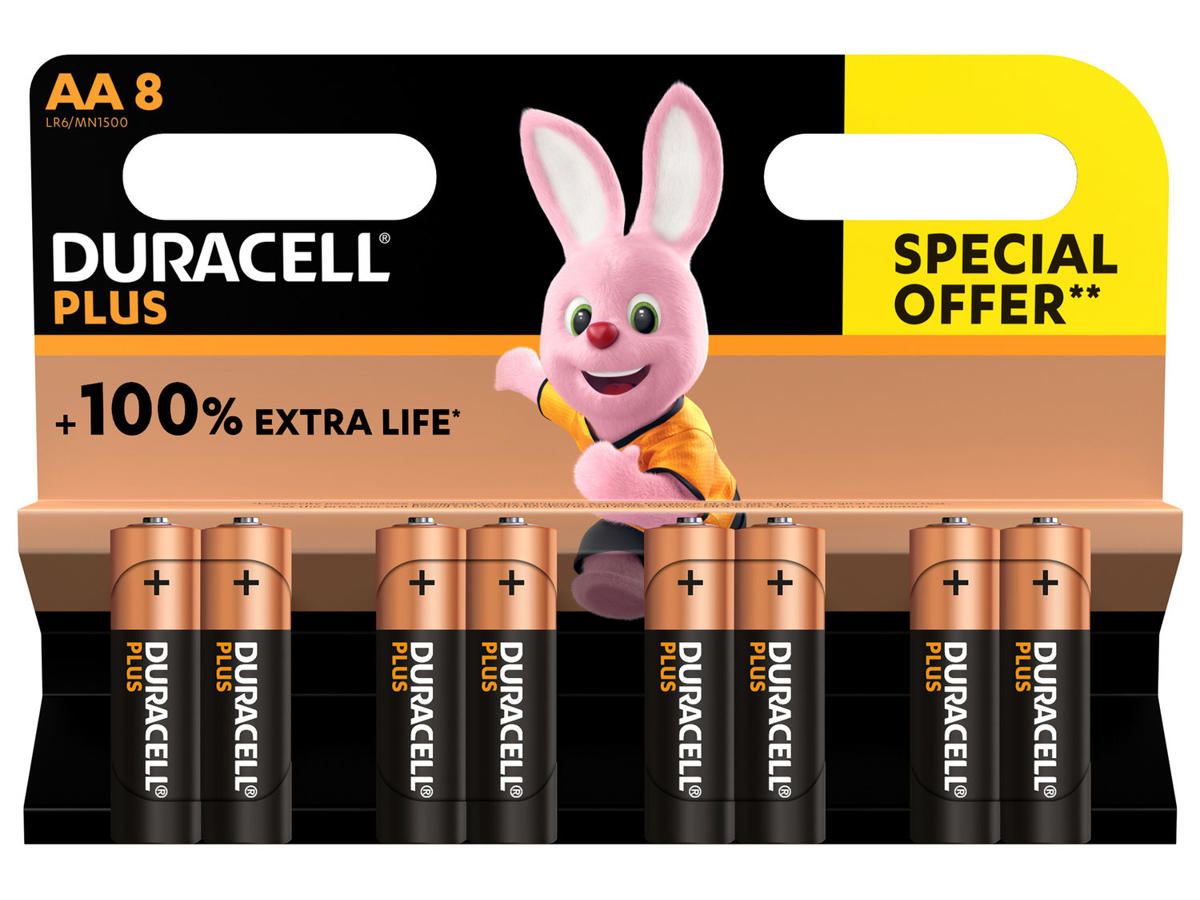 Duracell tilbyder et bredt udvalg af batterier til elektronik, som kræver pålidelig energi. Duracell Plus AA batterier er alkaline batterier, som er ideelle til alle dine dagligdags enheder. Duracell Plus AA har op til 100% mere energi* (*Lang levetid sammenlignet med Minimum Gennemsnitsvarighed fra 2015 IEC AA-testen af digitale kameraer. Resultaterne kan variere alt efter enhed eller brugsmønster (www.iec.ch)).