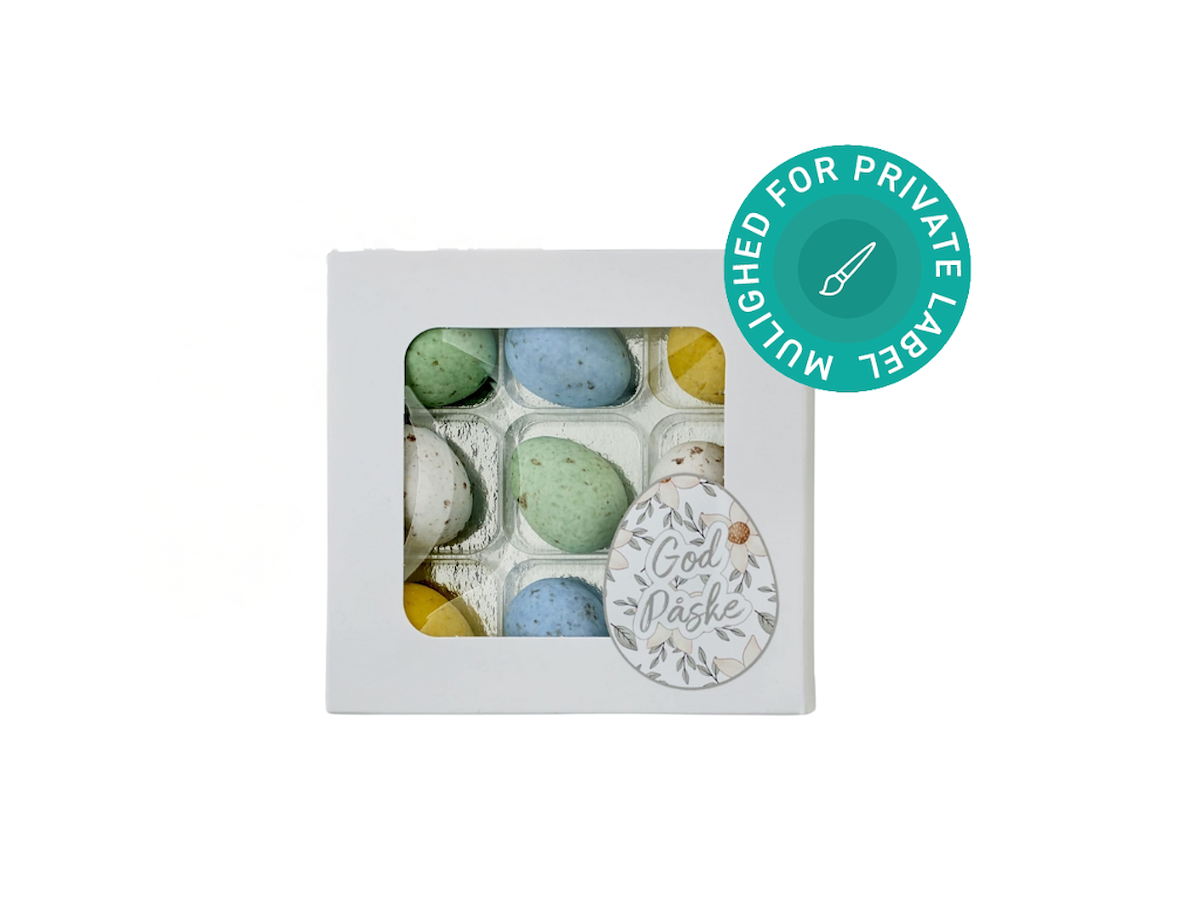 På dette påskeprodukt er det muligt at få dit eget logo trykt på, så du kan levere en personlig og unik påskegave til dine medarbejdere, kunder og samarbejdspartnere. Vær opmærksom på, at Hertels Boresko skal have modtaget både bestilling og trykfil med dit logo inden d. 16/3 2026 for at kunne levere bestillingen inden påske.