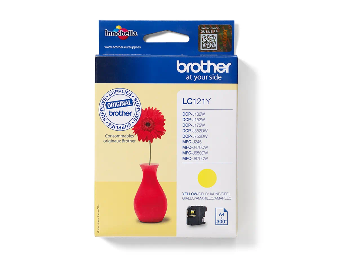 LC121Y passer til følgende printer: MFC-J875 DW, MFC-J970 DW, DCP-J132 W, DCP-J150, DCP-J152 W, Brother DCP-J152 WR, DCP-J172 W, DCP-J552 DW, DCP-J752 DW, MFC-J245, MFC-J285 DW, MFC-J470 DW, MFC-J475 DW, MFC-J650 DW, MFC-J870 DW