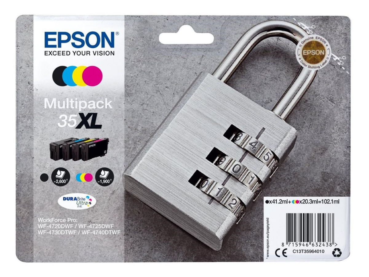C13T35964010 passer til følgende printer: WorkForce Pro WF-4720,WorkForce Pro WF-4720DWF,WorkForce Pro WF-4725,WorkForce Pro WF-4725DWF,WorkForce Pro WF-4730,WorkForce Pro WF-4730DTWF,WorkForce Pro WF-4740,WorkForce Pro WF-4740DTWF,WorkForce Pro WF-4740DWF