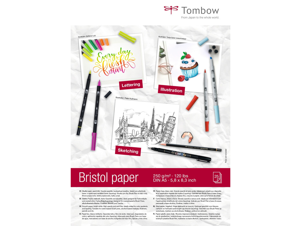 Skitseblok med kraftigt, hvidt papir i høj kvalitet, velegnet til både tørre og mere flydende tegneredskaber (blyanter, penselpenne, farveblyanter og indian ink ) 25 ark syrefrit papir 250g/m2.