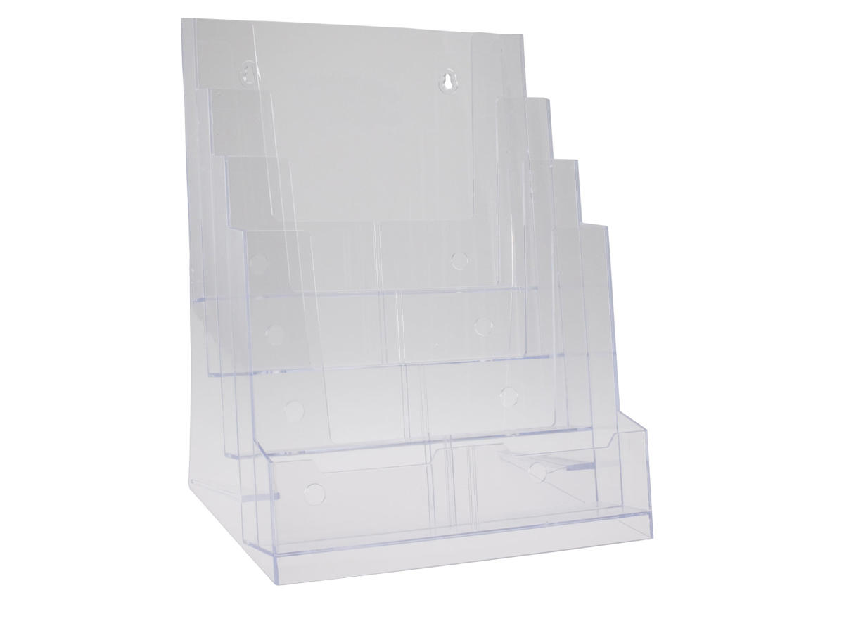 Præsenter dine brochurer og markedsføringsmateriale på en professionel måde med vores elegante brochureholder. Designet til at fremhæve dine materialer, sikrer denne holder, at dine brochurer altid er synlige og let tilgængelige. Den robuste konstruktion garanterer langvarig brug, mens det stilfulde udseende passer ind i enhver indretning.