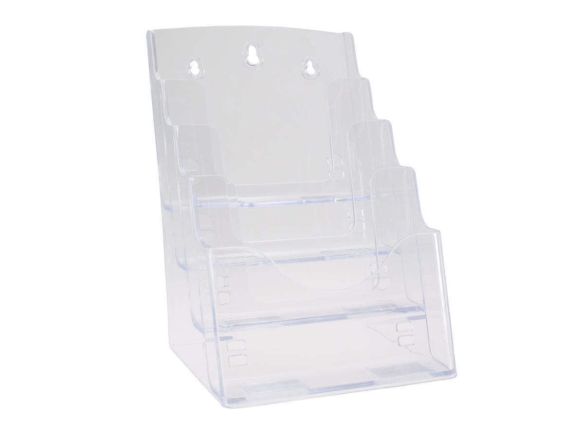 Præsenter dine brochurer og markedsføringsmateriale på en professionel måde med vores elegante brochureholder. Designet til at fremhæve dine materialer, sikrer denne holder, at dine brochurer altid er synlige og let tilgængelige. Den robuste konstruktion garanterer langvarig brug, mens det stilfulde udseende passer ind i enhver indretning.