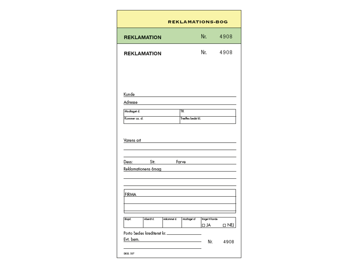 Den giver dig mulighed for at dokumentere reklamationens detaljer, såsom dato, kundens oplysninger, produktnavn og årsag til reklamationen. Med en reklamationsbog kan du effektivt følge op på reklamationerne, træffe relevante handlinger og sikre, at kundens bekymringer bliver håndteret på en professionel og tilfredsstillende måde.