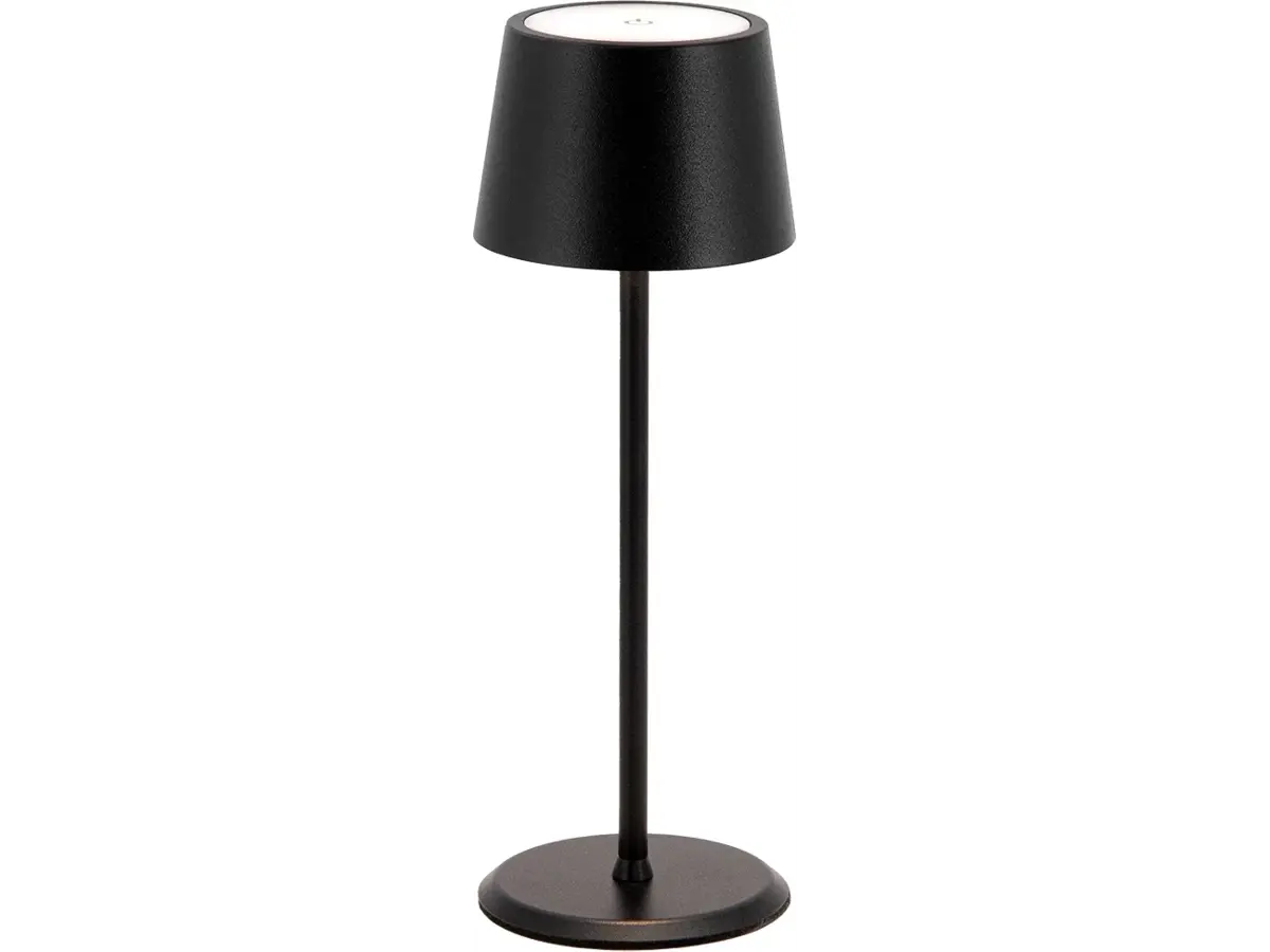 Denne tidløse bordlampe med indbygget LED-lys giver et dæmpbart varmt lys og kan nemt genoplades via USB.