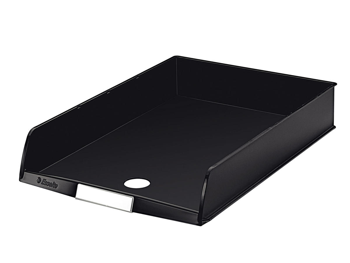 Brevbakke Esselte C4 udstråler kvalitet og er fremstillet i sorte, tidssvarende design som kan integreres problemfrit i et hvilket som helst kontormiljø. Dense robuste konstruktion garanterer lang levetid, og den rummelige størrelse på 357x245x59mm giver masser af plads til dine dokumenter.