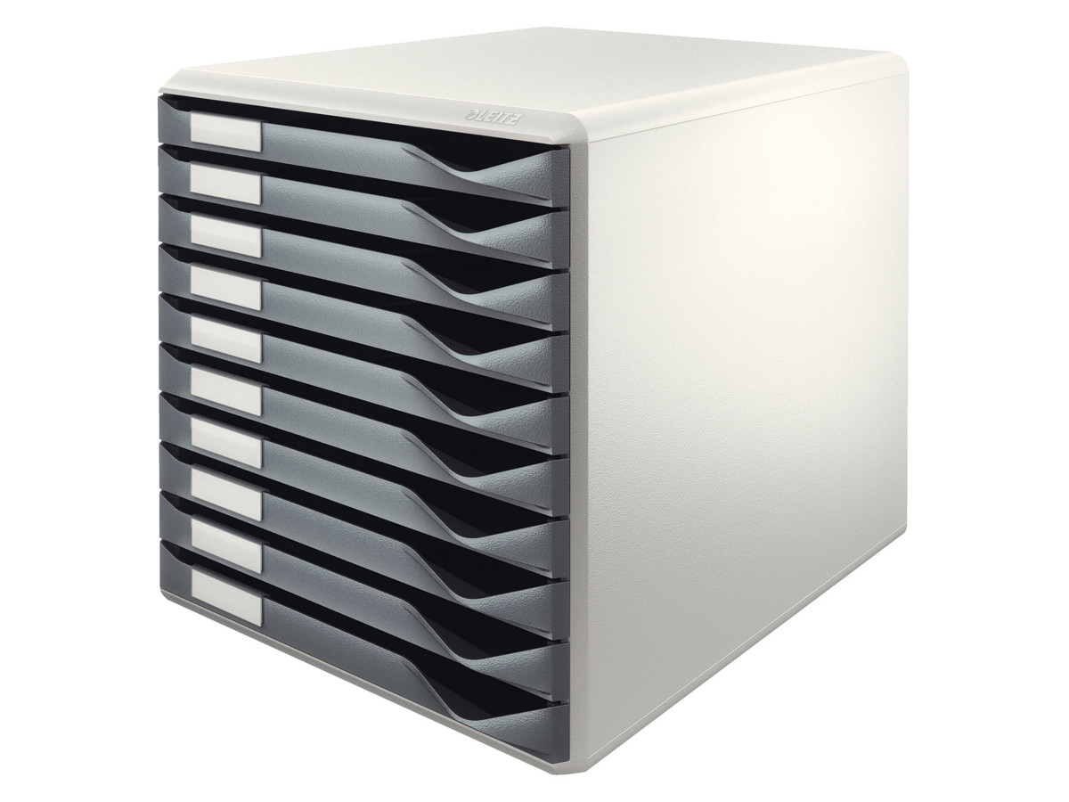 Det lysegrå hus med farvede skuffer tilføjer et touch af stil til ethvert kontormiljø. Det robuste hus har 10 let glidende skuffer, alle med skuffestop for at forhindre dem i at falde ud. Dette gør det utrolig nemt at få adgang til dine dokumenter, når du har brug for dem.