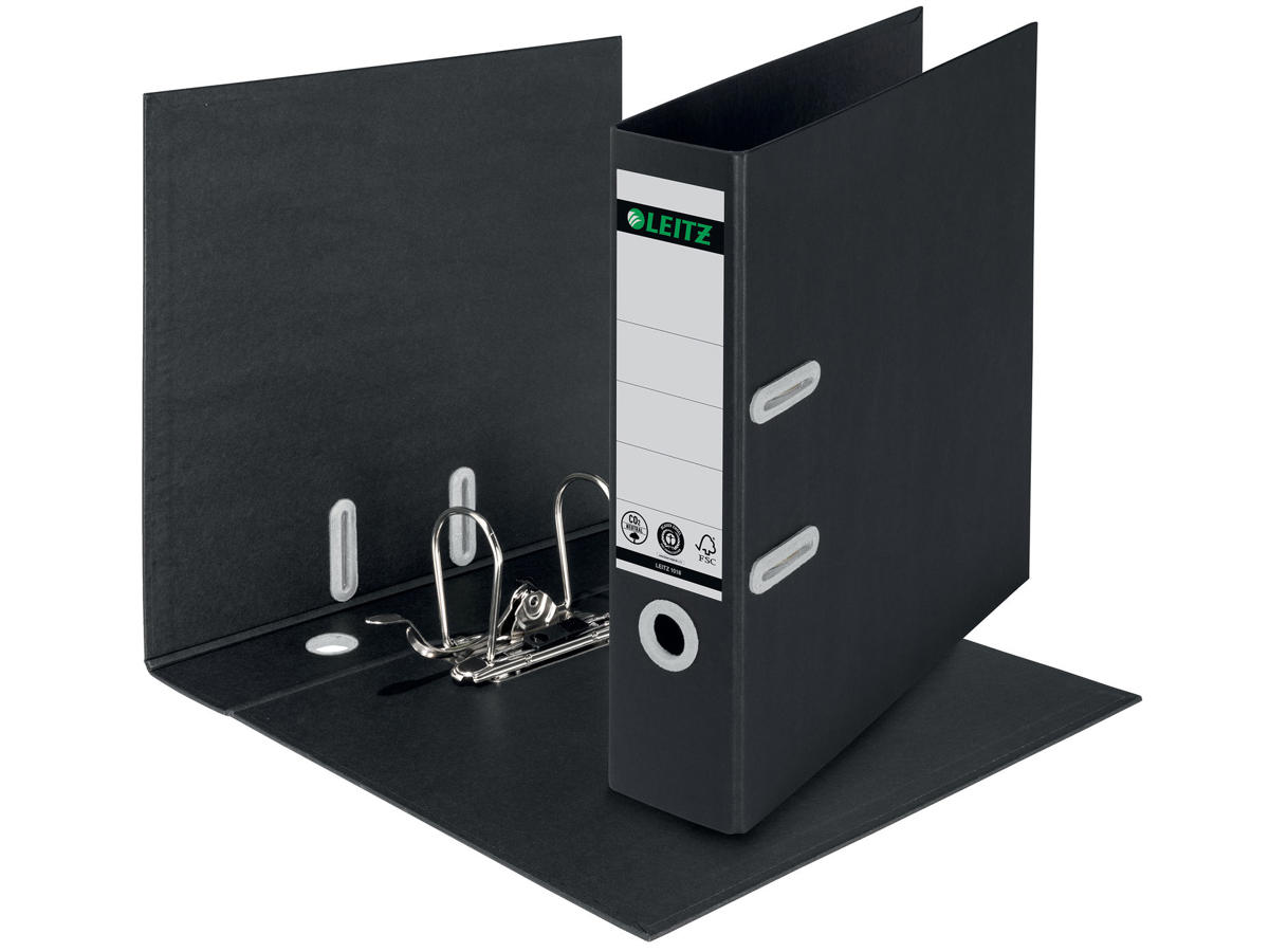 Leitz 180° Recycle brevordner kommer med en unik patenteret 180° mekanisme, hvilket sikrer bred åbning og hurtigere arkivering. Det inkludere også et tommelfingerhul og radoringe, for nem tilbagetrækning og sikker arkivering. Med sin sorte omslagspapir og slagkraftige sort farve, leveres den professionelle stil lige til døren.