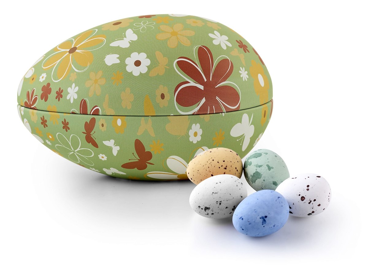 200g. Belgiske fugleæg i dekorativt metalæg.