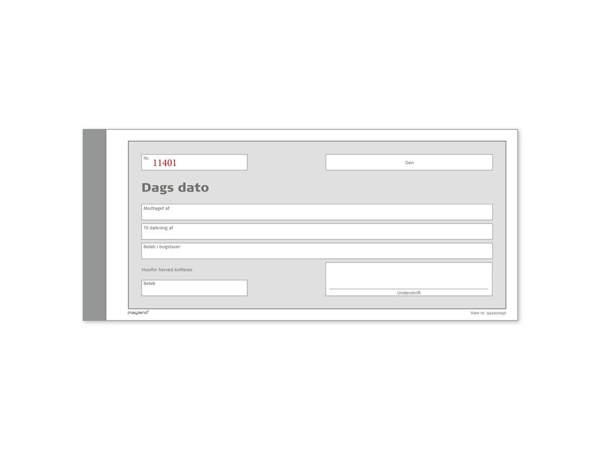 Denne blok er ikke kun praktisk, men også professionel i sit udtryk. Den hjælper med at sikre, at alle nødvendige oplysninger er korrekt dokumenteret og let tilgængelige. Uanset om du driver en virksomhed eller blot har brug for at holde styr på personlige transaktioner, vil Dags Dato-blokken være et uundgåeligt værktøj i din hverdag. Gør dine transaktioner mere organiserede og professionelle med denne funktionelle blok.