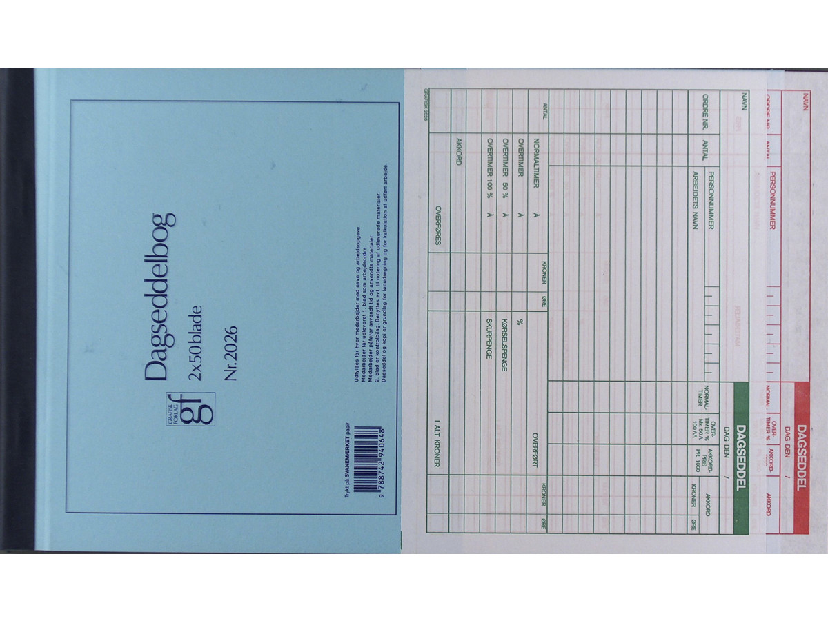 En blok med dagsedler (2 Xx 50 blade) er designet til at gøre din hverdag lettere. Hver side er nummereret og inkluderer indlagt karbonpapir, så du nemt kan lave kopier af vigtige oplysninger. Med felter til navn, dato, kørselspenge, skurpenge, akkord, sammentælling af timer og total, har du alt, hvad du behøver for at holde styr på dine daglige optegnelser.