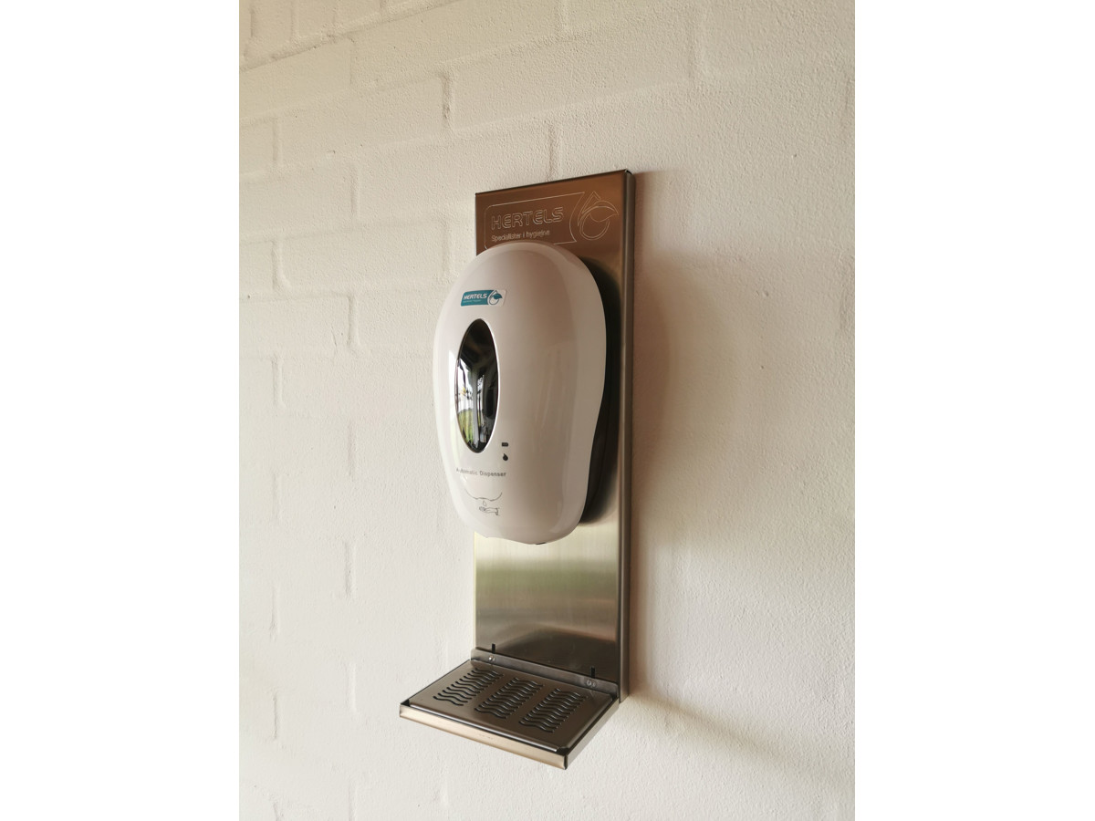 Flot vægstander i rustfrit stål, med drypbakke, som kan tages af og rengøres.