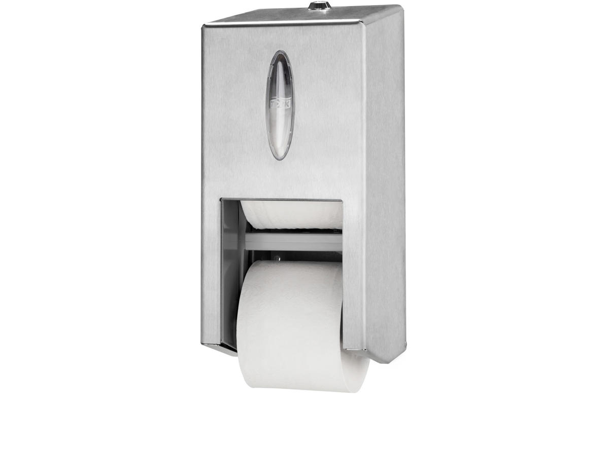 Effektiv dispenser, som kan rumme op til ni gange mere papir end to standard toiletruller, sikrer, at der altid er toiletpapir til rådighed for brugerne.