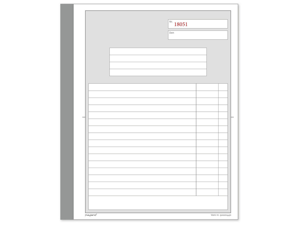 Den klassiske duplikatbog, der er ideel til en bred vifte af forretningsformål. Uanset om du har brug for følgesedler, regninger, rekvisitioner eller timesedler, er denne bog det perfekte værktøj til at holde styr på dine dokumenter. Med 2x50 blade og indlagt karbonpapir sikrer du, at du altid har en kopi af dine vigtige oplysninger.