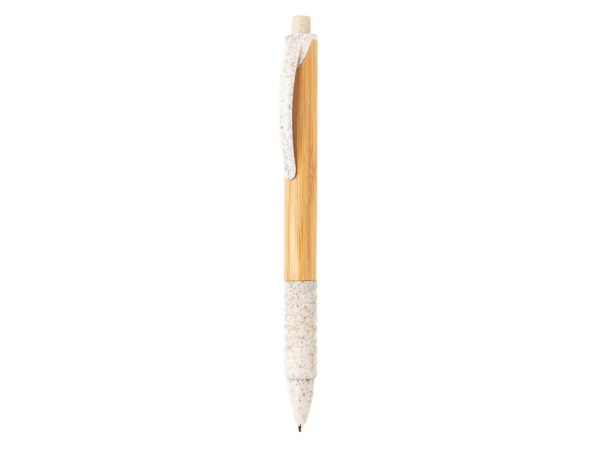 Denne type pen kombinerer to typer bæredygtige materialer og resulterer i et smukt design. Pennen er lavet i bambus og hvedestrå. Dokumental refill med blå skrift, t/c kugle for ultra behagelig skrivning. Gennemsnits skrivelængde på 1.200 meter.