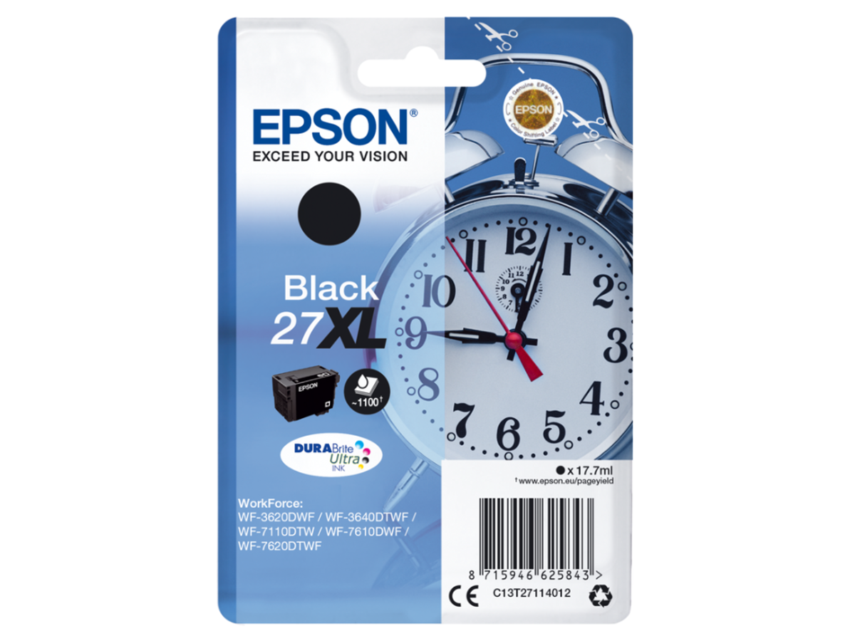 C13T27114012 passer til følgende printer: WorkForce WF-3600,WorkForce WF-3620,WorkForce WF-3620DNF,WorkForce WF-3620DWF,WorkForce WF-3620DWFX,WorkForce WF-3620WF,WorkForce WF-3640,WorkForce WF-3640DTWF, WorkForce WF-7110,WorkForce WF-7110DTW, WorkForce WF-7110WF,WorkForce WF-7210,WorkForce WF-7210DTW, WorkForce WF-7210WF,WorkForce WF-7600,WorkForce WF-7610,WorkForce WF-7610DWF,WorkForce WF-7610WF,WorkForce WF-7615DWF,WorkForce WF-7620,WorkForce WF-7620DTWF,WorkForce WF-7620DWF, WorkForce WF-7700,WorkForce WF-7710, WorkForce WF-7710DWF, WorkForce WF-7715,WorkForce WF-7715DWF, WorkForce WF-7720,WorkForce WF-7720DTWF