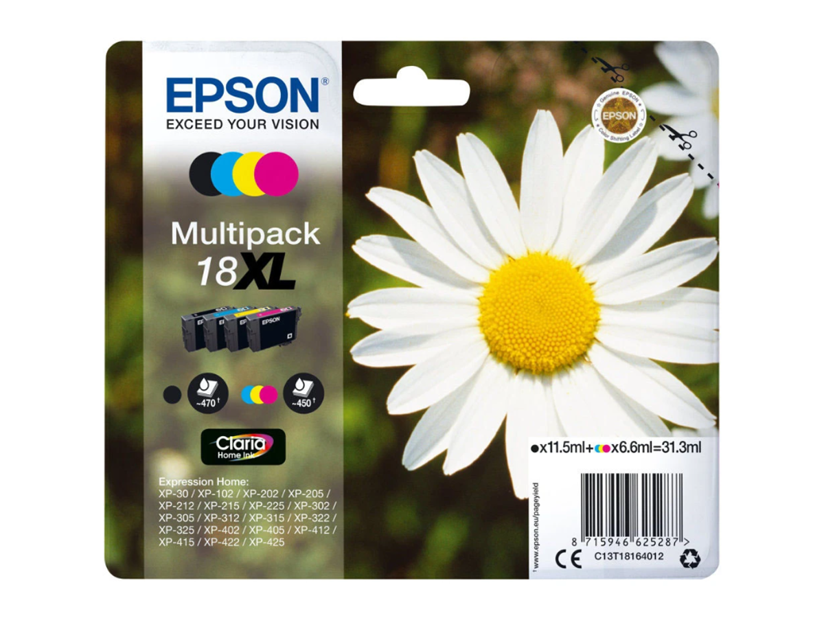 C13T18164012 passer til følgende printer: XP-30,XP-33,XP-100,XP-102,XP-200,XP-202,XP-205,XP-210,XP-212,XP-215,XP-225,XP-300,XP-302,XP-305,XP-310,XP-312,XP-313,XP-315,XP-320,XP-322,XP-325,XP-400,XP-402,XP-405WH,XP-410,XP-412,XP-413,XP-415,XP-420,XP-422,XP-425