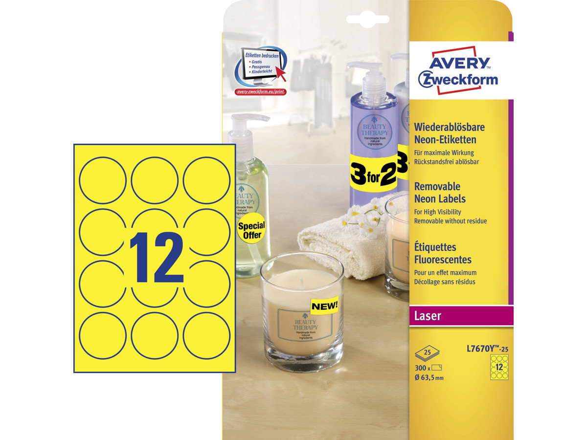 Med Avery L7670Y Etiketter kan du nemt lave iøjnefaldende etiketter til dine produkter, kampagner eller events. Om du vil fremhæve en ny, lavere pris, markere et produkt som nyt, eller simpelthen give dine kunder vigtig information på en iøjnefaldende måde, er disse etiketter det perfekte værktøj.