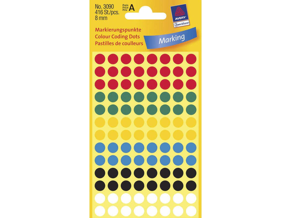 Avery 3090 Prikmærkater er dine perfekte hjælpere, når det kommer til planlægning og organisering. Disse farvekodningsdots er ideelle til at markere deadlines, datoer i projektplaner, bøger eller til intern ferieplanlægning på kontoret.
