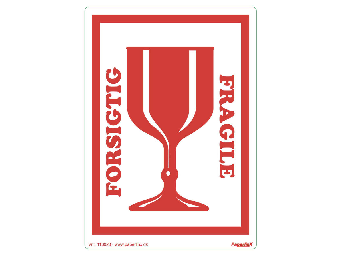 Etiket forsigtig/glas 150x210 mm rød 250 stk