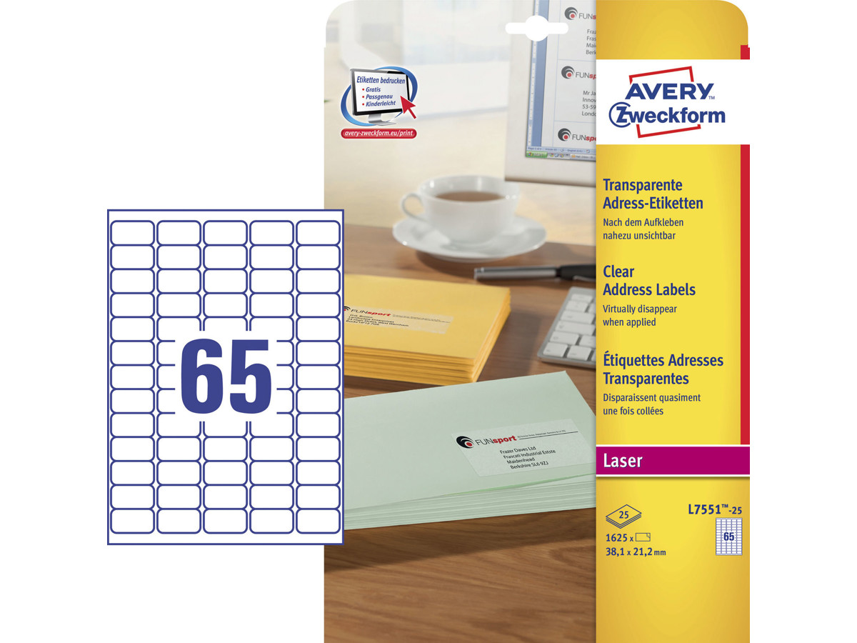 Med Avery L7551 transparente adresseetiketter får du både funktionalitet og et professionelt udtryk i én og samme pakke.