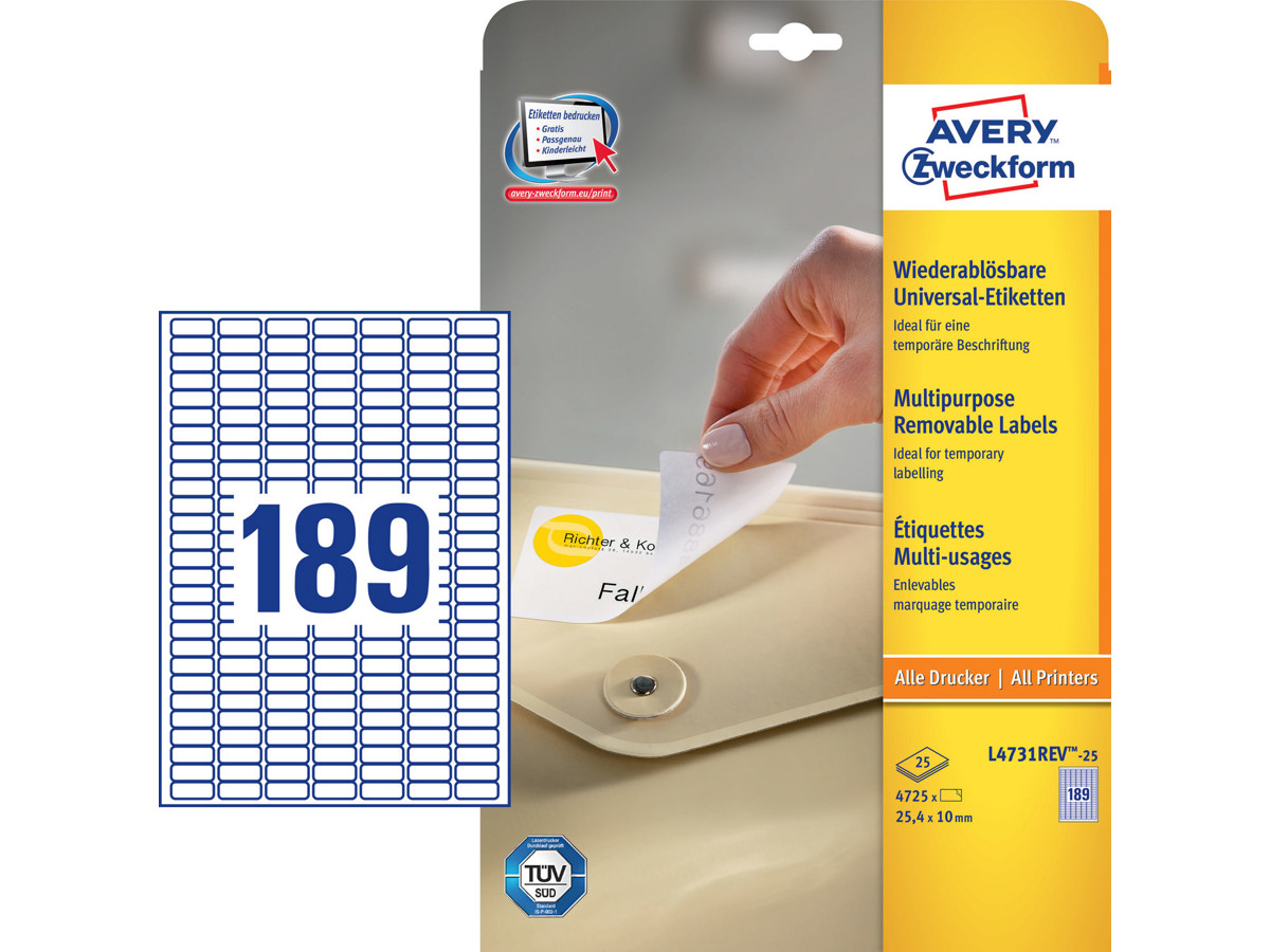 Avery L4731REV universaletiketter er designet til at opfylde alle dine generelle mærkningsbehov. Disse aftagelige etiketter er særligt nyttige til prismærkning, midlertidig mærkning og organisering - de klæber pålideligt, men kan fjernes nemt og uden spor af limrester.