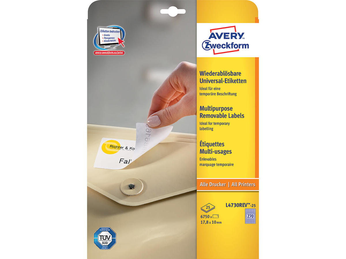Etiket 17,8x10mm Avery L4730REV aftagelig hvid 270 stk/ark 30 ark