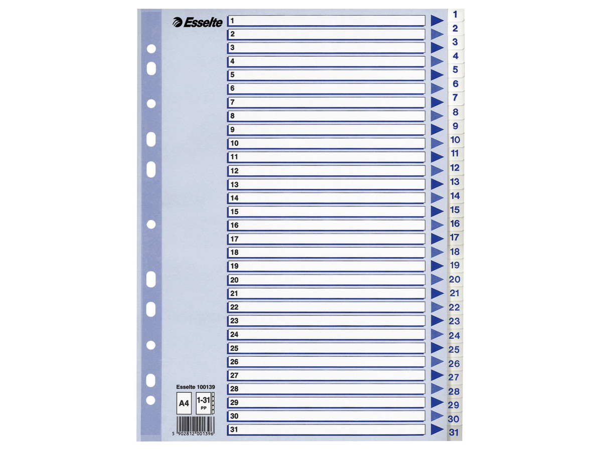 Register Esselte PP A4 hvid er et nødvendigt redskab på ethvert kontor, der vil have orden og overblik. Nummererede faneblade fra 1-31 gør det nemt at strukturere og finde dokumenter.