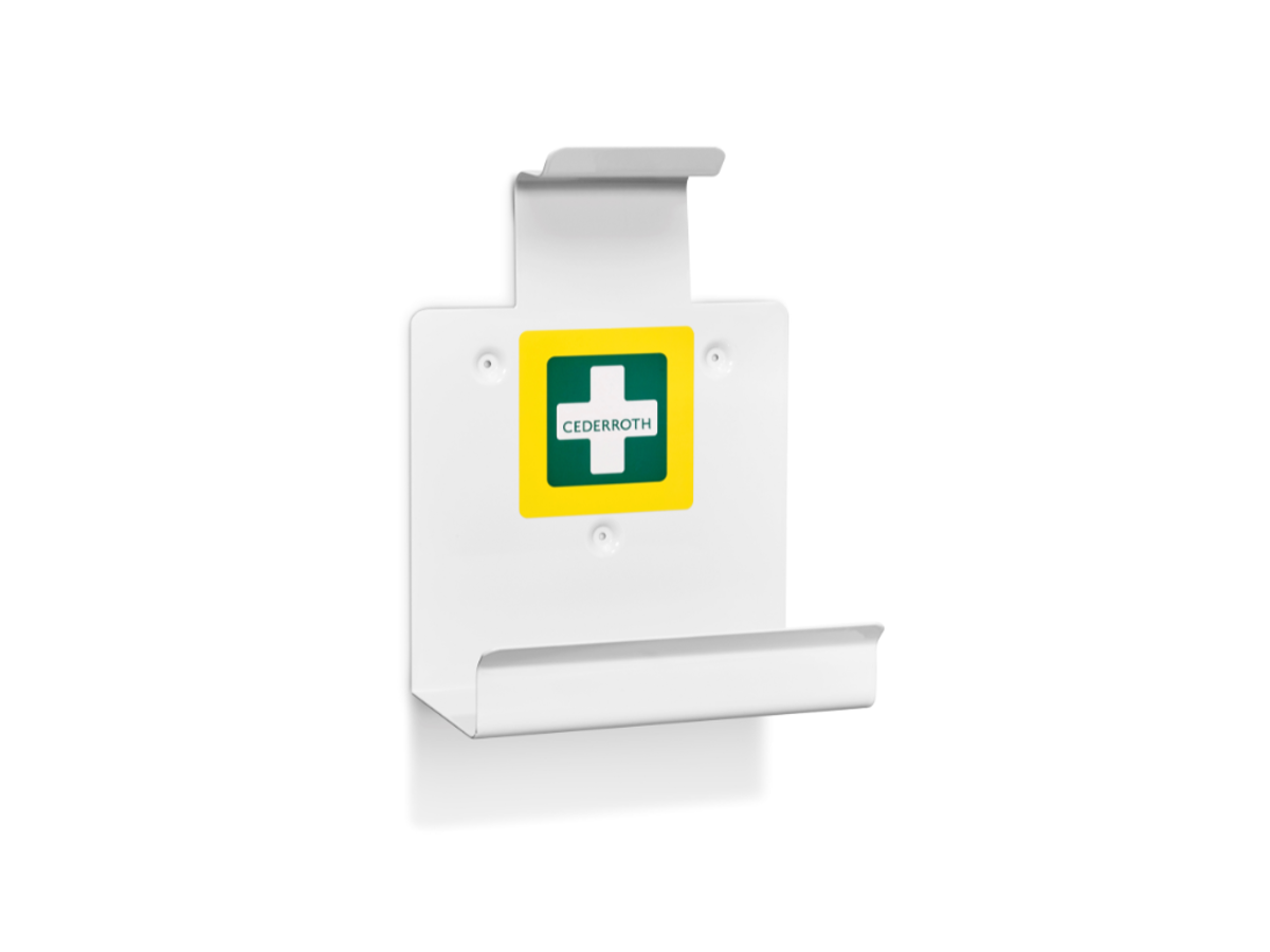 Med vægholderen får Førstehjælpskassen en bestemt plads, så den altid kan findes i førstehjælpssituationer.