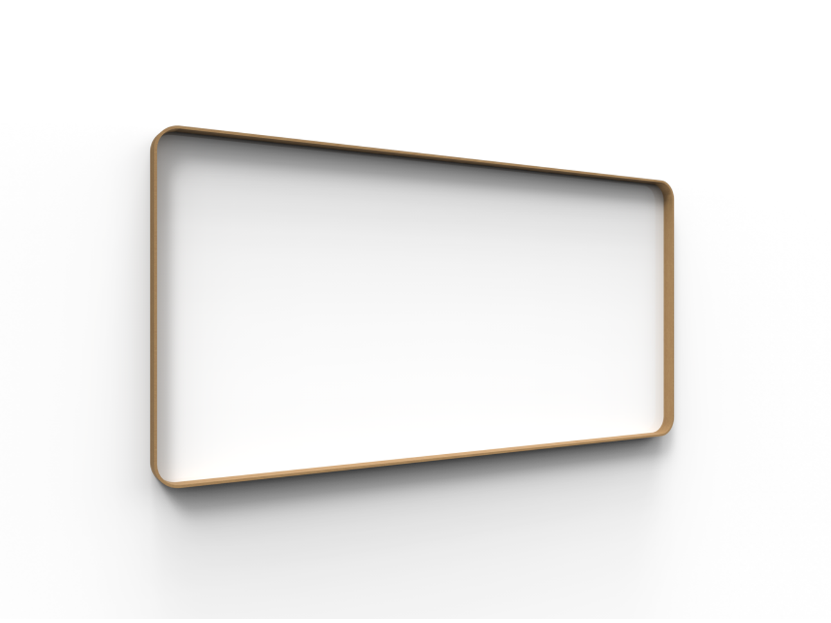 Lintex magnetisk glastavle med bløde afrundede hjørner og en elegant ramme i samme farve, der indrammer hele tavlen samt fungerer som pennehylde.
