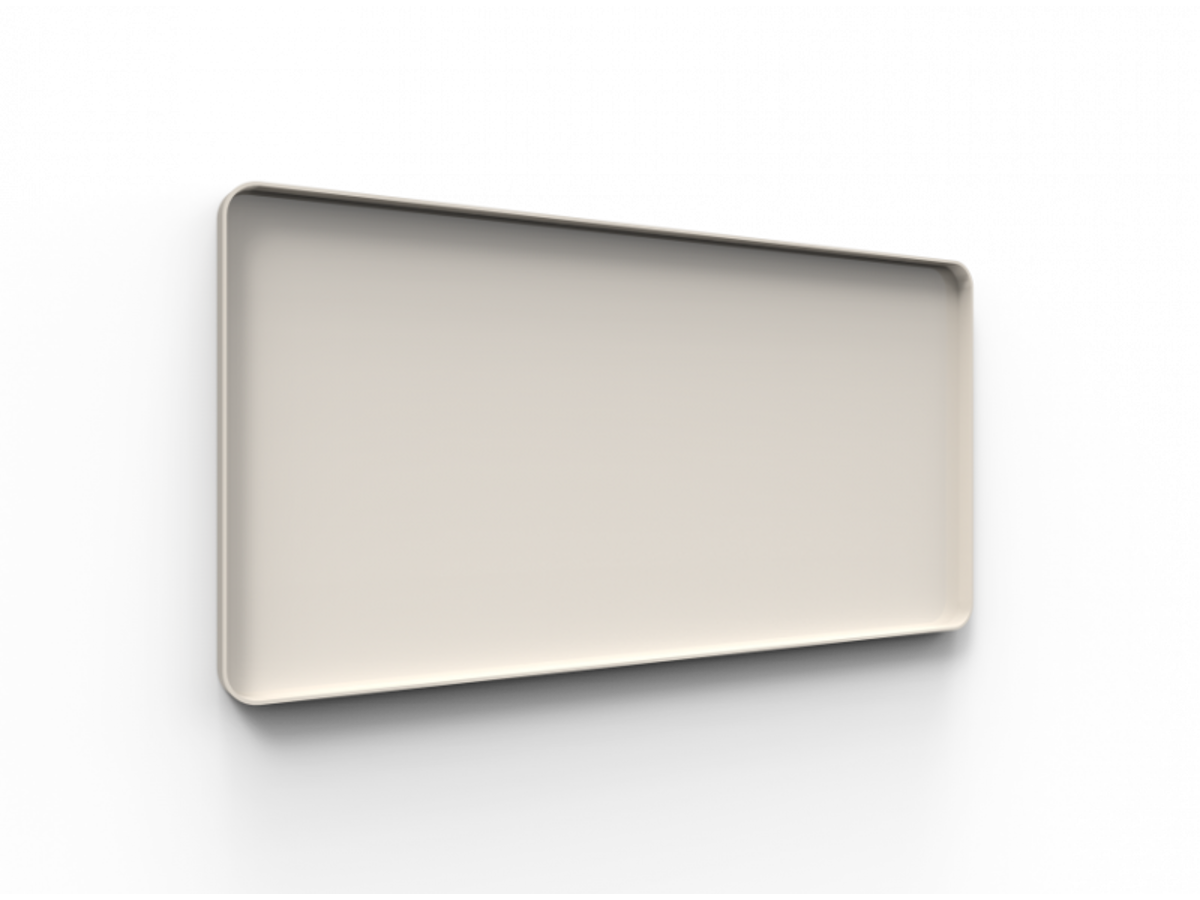 Lintex magnetisk glastavle med bløde afrundede hjørner og en elegant ramme i samme farve, der indrammer hele tavlen samt fungerer som pennehylde.