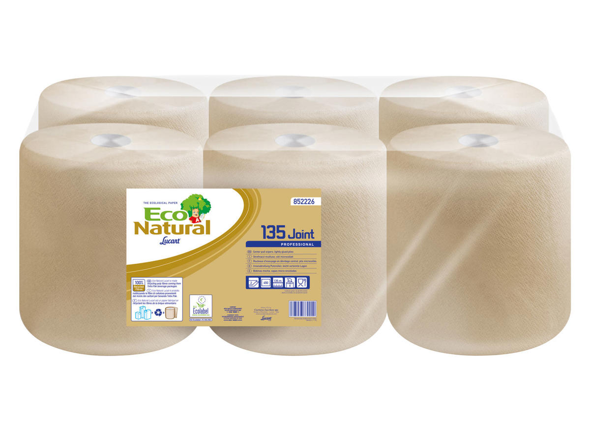 Håndklæderulle midi Lucart T3 Natural 2-lags 100% genbrug 6 ruller