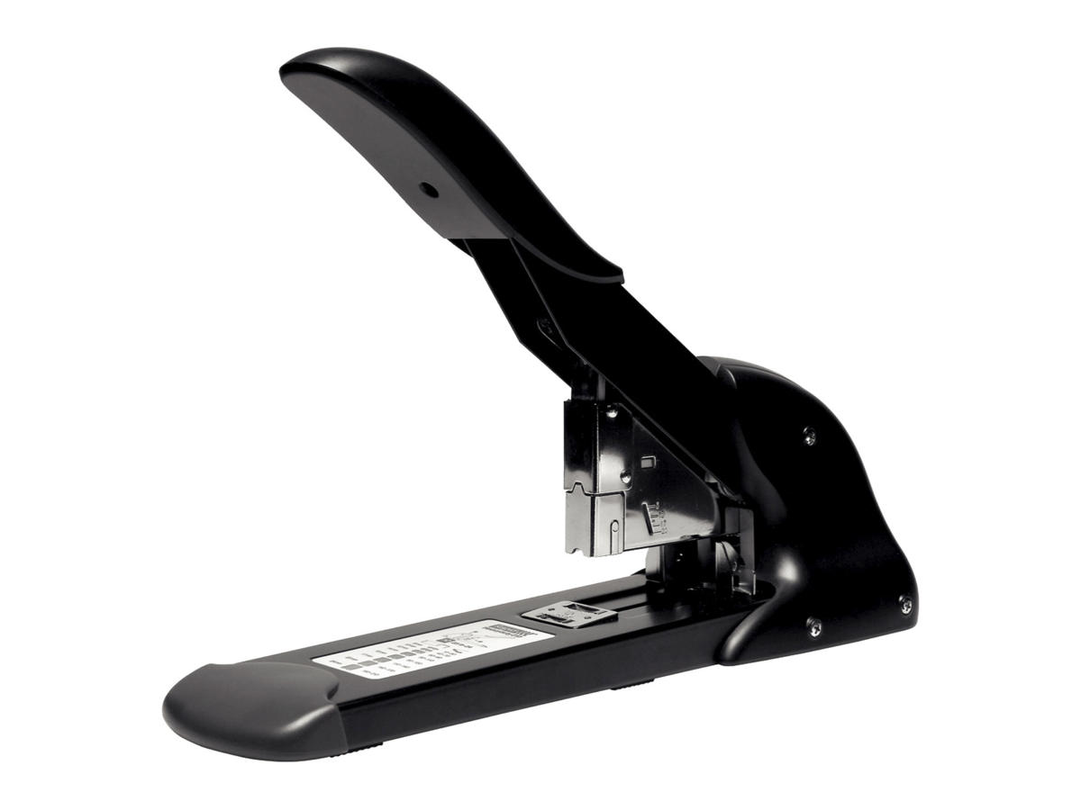 Rapid Fashion HD210 er en kraftig hæftemaskine, der kan klare selv de mest krævende opgaver. Dette frontladede, super kraftige værktøj er ideelt til håndtering af store papirstabler. Med sin robuste stålkrop og praktiske håndtagsmekanisme er den perfekt til postrummet eller trykkeriet.