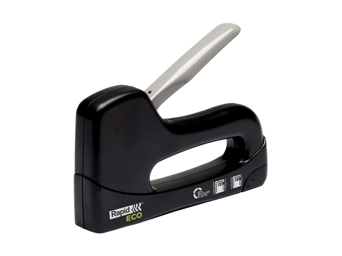 Introduktion af Rapid ECO hæftepistol - banebrydende i sin anvendelse af 100% genbrugsplast. Denne genbrugsplast hæftepistol er lige så praktisk, som den er bæredygtig, klar til at imødekomme alle dine hæftningsbehov.