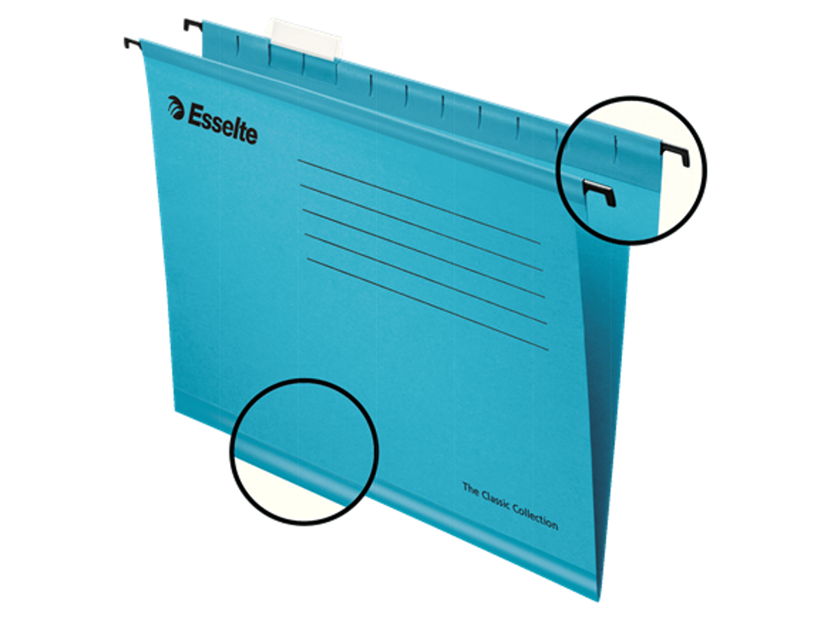 Esselte er kendt for at levere høj kvalitets kontor produkter. Med denne hængemappe Esselte, Forstærket A4, kan du være sikker på der er ingen undtagelse. Få styr på dine dokumenter på den mest effektive og holdbare måde.