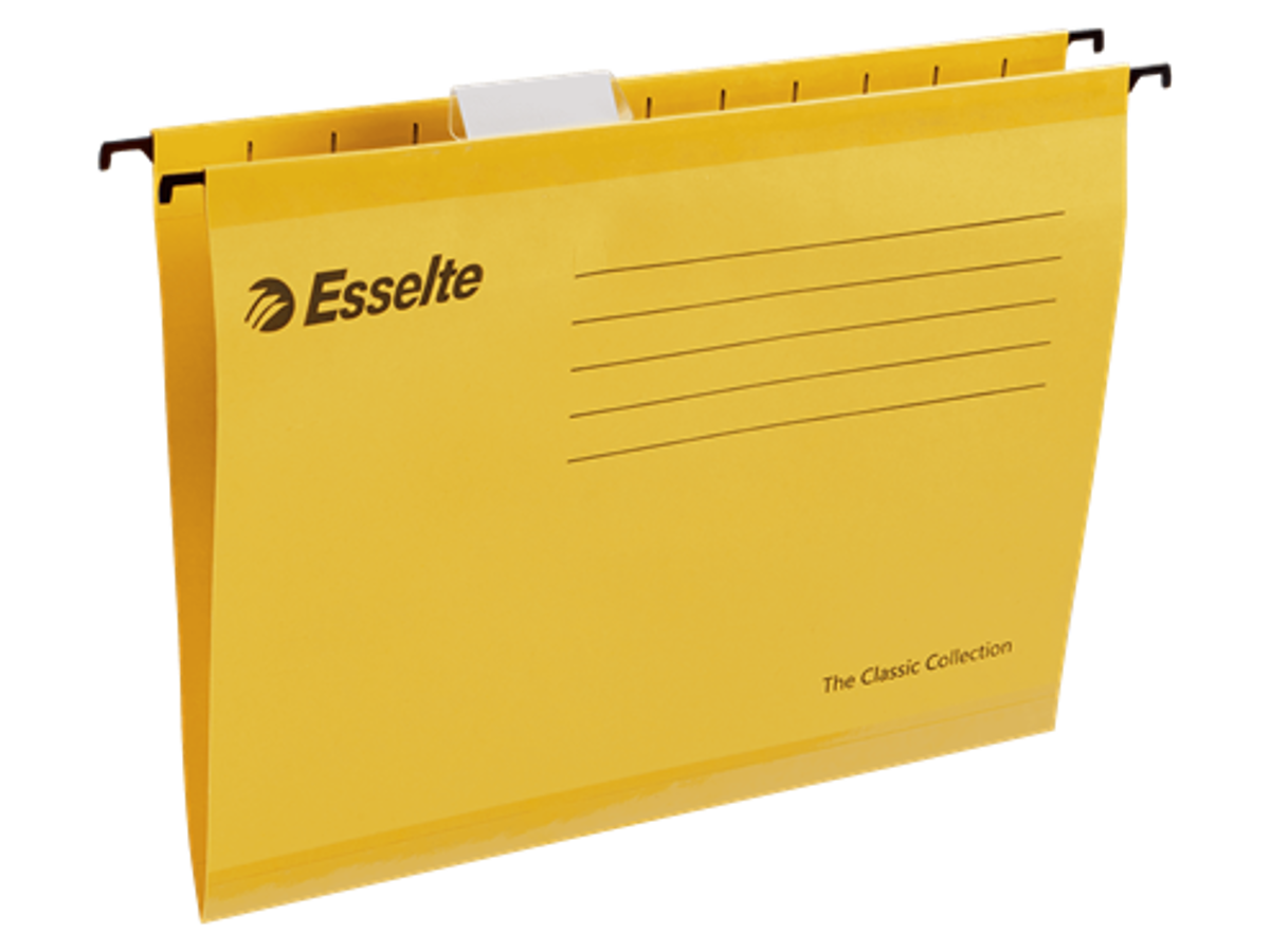 Hængemappen Esselte er ikke kun praktisk, men den kommer også med et pænt touch. Den er gul, hvilket giver den en iøjnefaldende udseende. Farven gør det let at skelne mappen i dit arkiv og bringer en positiv atmosfære til dit arbejdsmiljø.