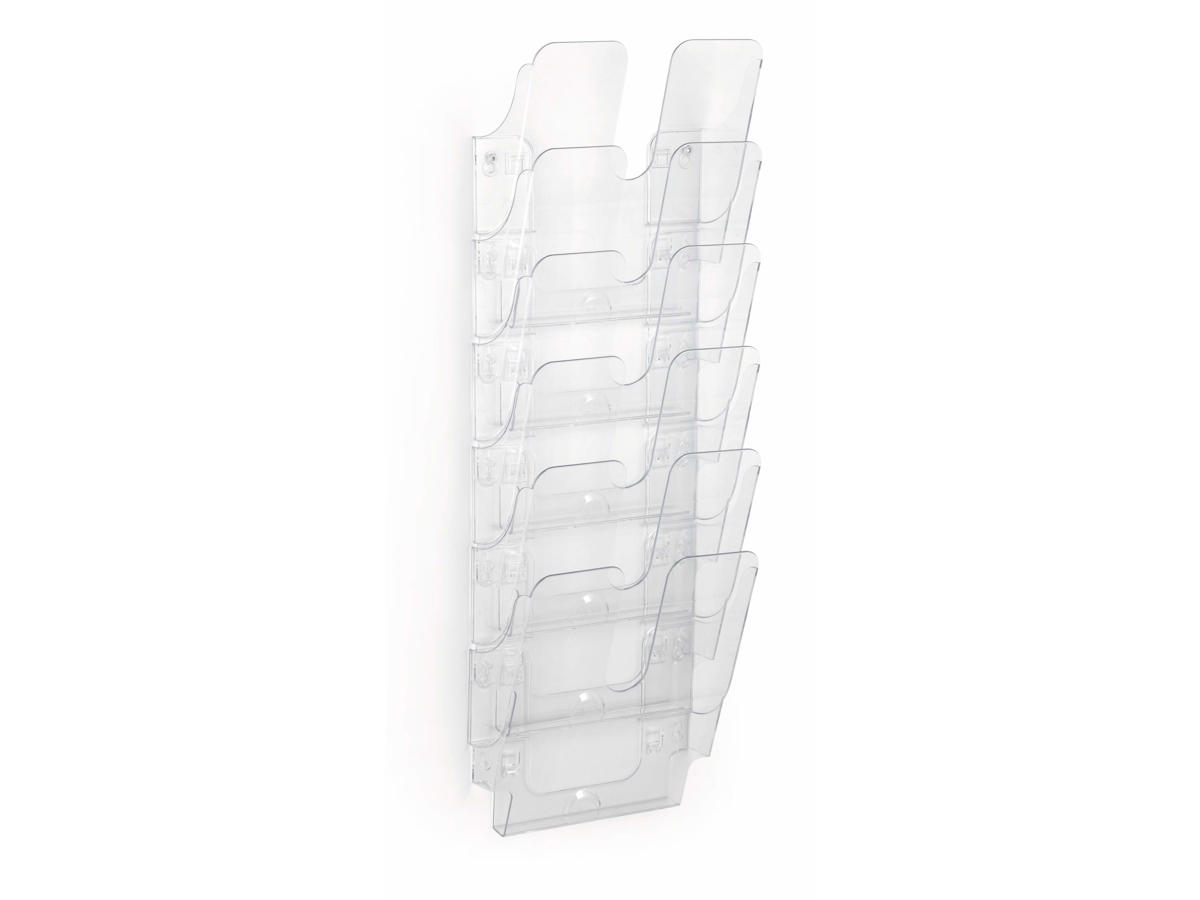 Brochure og blanketholder for brochurer i A4 højformat. Maksimal kapacitet 23mm tykke bundter. Til vægmontering, skruer indgår. Kan anvendes enkeltvis eller sammensættes, efter behov, ved at anvende snap låsen.