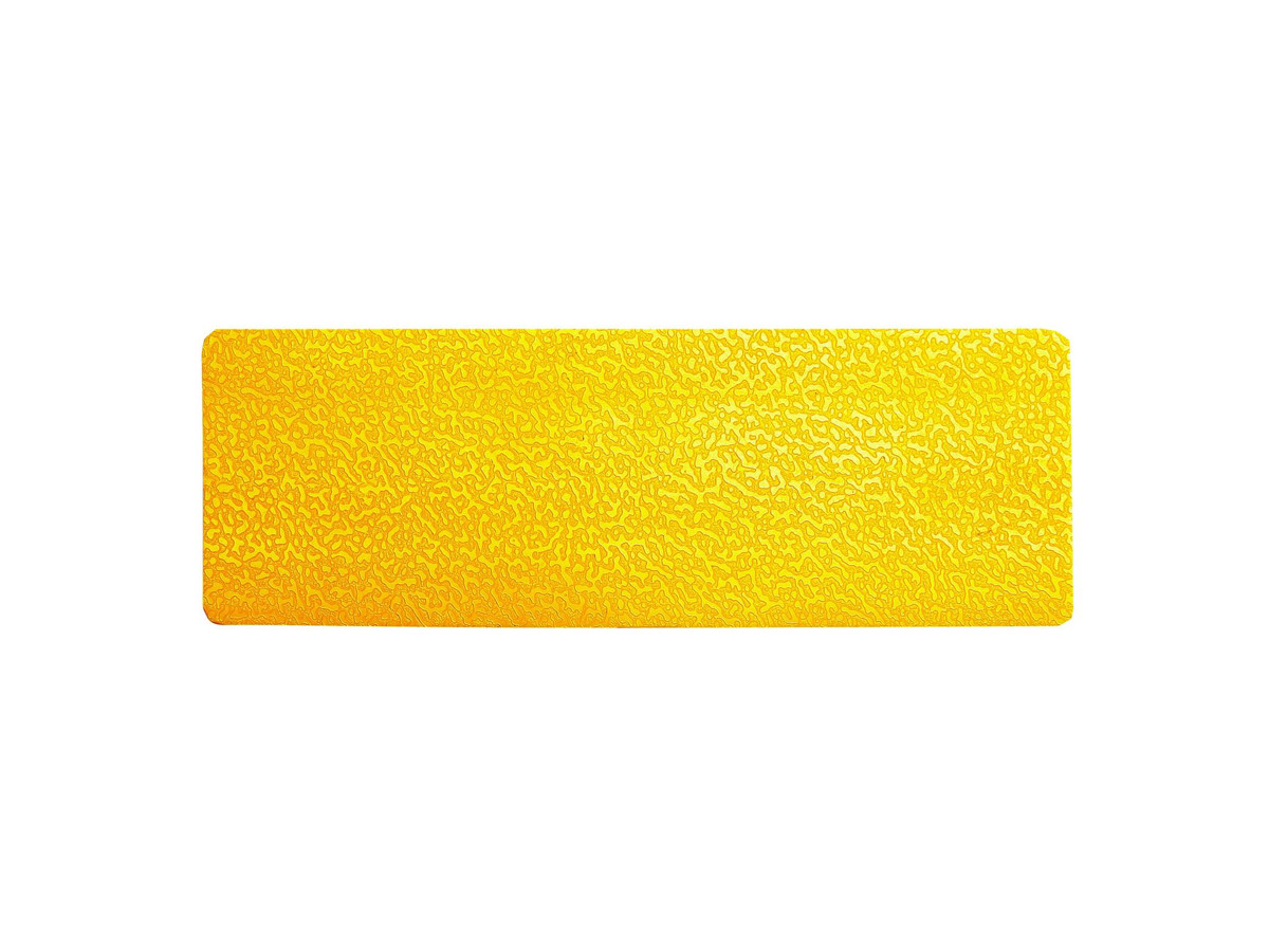 Selvklæbende symbol til indendørs anvendelse · I holdbar materiale der tåler slid · Anti-slip klasse R9 i henhold til DIN 51130 · Farve: RAL 1003 Signal gul · Dimensioner (B x H x D): 50 mm x 0,7 mm x 150 mm