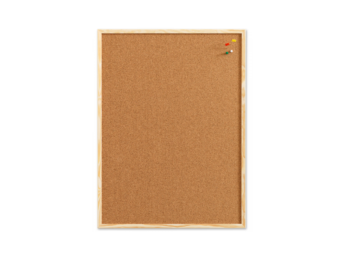 Kork tavlen måler 100 x 60 cm og kommer med 6 pins.