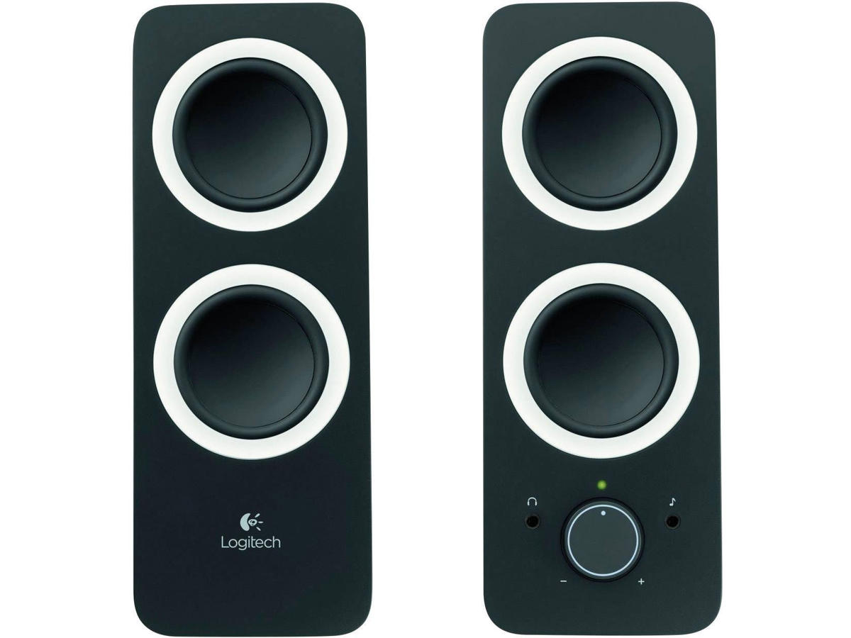 På højre højtaler sidder et hovedtelefonstik og et ekstra stik, og du kan nemt tænde og slukke samt kontrollere lydstyrke og bas.