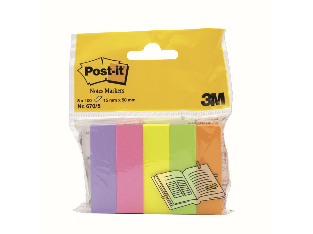 Indexfaner Post-it 670/5 15x50 mm ass 5 stk