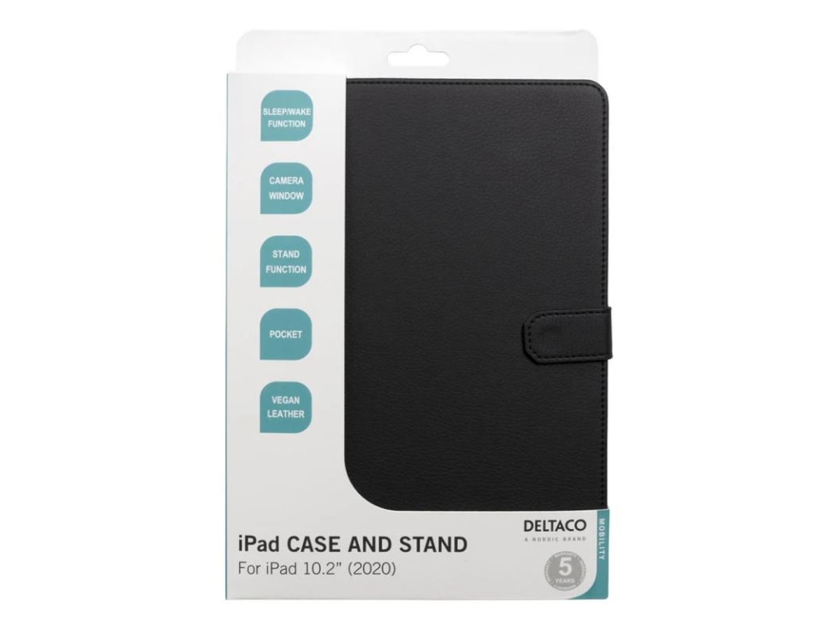 Deltaco Folioetui med Stativ i sort er den perfekte løsning for dig, der ønsker at beskytte din iPad på en stilfuld og funktionel måde. Fremstillet af slidstærkt PU-læder, der beskytter mod ridser og stød.