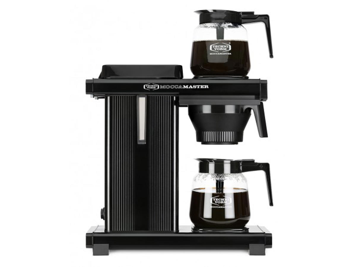 Moccamaster Moccaserver - 1,8 ltr. Leveres med 2 glaskander Forsynet med varmeplade på toppen Brygger 1,8 liter på ca. 7 minutter Kapacitet:16 liter/128 kopper pr. time 3,6 liter kaffe til rådighed på begge kander Kabinet i aluminium Effekt 2360 W Skåleformede filtre Ø: 11 cm.