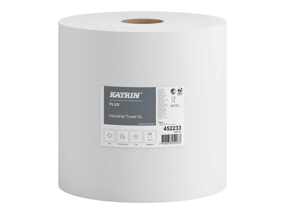 Katrin Plus XL 452233 1-lag industriaftørringspapir er det ultimative valg til din virksomhed. Dette ekstra stærke industriaftørringspapir har en hurtig og høj absorptionsevne, som gør det perfekt til krævende aftørring og rengøring i mange brancher. Papiret er specielt velegnet til at arbejde med olie, fedt, svanemærket rengøringsmiddel og vand.